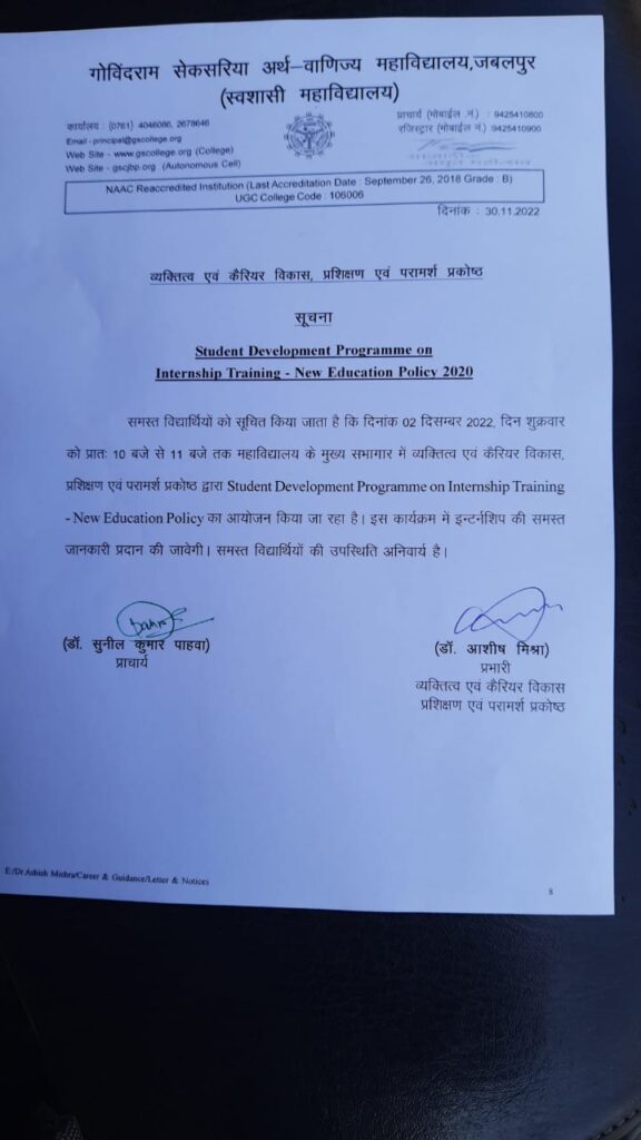 All rights reserved. | © 2023 G.S. College Of Commerce & Economics Jabalpur, M.P. | Maintain and Hosted by JP Techno Park